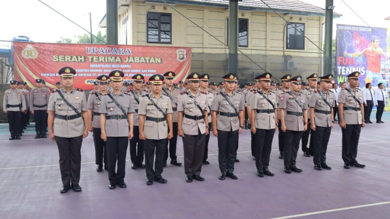 Polres Musi Rawas (Mura), menggelar Upacara Serah Terima Jabatan (Sertijab), Wakapolres, Kabag Ren, Kasat Lantas, Kasat Narkoba, Kasat Binmas, Kasi Humas, Kapolsek Muara Lakitan, Kapolsek STL Ulu Terawas, Kapolsek Jayaloka dan Kapolsek Purwodadi, di Mapolres Mura, sekitar pukul 07.30 WIB, Sabtu (25/1/2025).