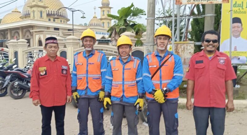 Gambar : Ketua DPC PBB Musi Rawas, Hotler Situmorang didampingi Basarjo Sormin foto bersama dengan pihak PLN dilokasi pelaksanaan sholat IED masjid Taqwa Pasar Megang Sakti pada Senin, 31 Maret 2025.