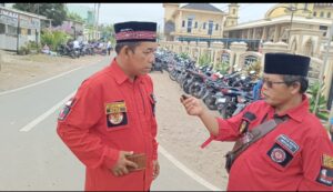Ketua DPC Musi Rawas, Hotler Situmorang saat dalam wawancara disela kegiatan pengamanan sholat IED masjid Taqwa.