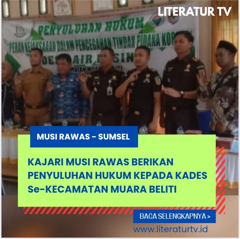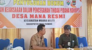 Bertempat di Kantor Pemerintah Desa Mana Resmi, Kepala Kejaksaan Negeri (Kajari) Kabupaten Musi Rawas, Sumatera Selatan, Abu Nawas SH, MH, didampingi Kepala Seksi Intelijen (Kasi Intel), Gustian Winanda, S.H. turun langsung berikan penyuluhan hukum kepada kepala desa (kades) se-Kecamatan Muara Beliti pada Selasa, 17 Juni 2025.