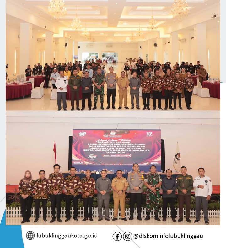 Sekda Kota Lubuk Linggau, H Trisko Defriyansa menghadiri Rapat Pleno Terbuka Rekaputulasi Hasil Penghitungan Perolehan dan Penetapan Hasil Pemilihan Gubernur dan Wakil Gubernur Sumsel serta Wali Kota dan Wakil Wali Kota Lubuk Linggau yang dilaksanakan di Ballroom Hotel Dewinda, Senin (2/12/2024).